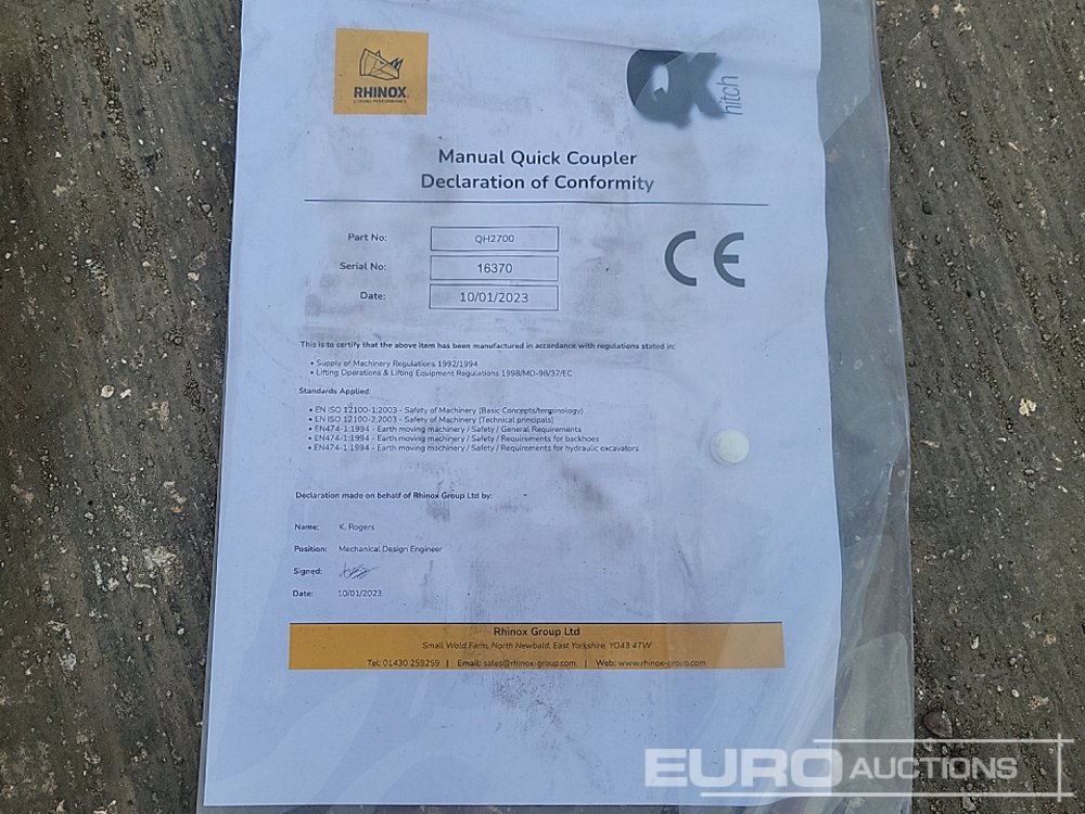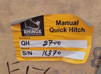 Unused Rhinox Manual QH 30mm Pin to suit Mini Excavator