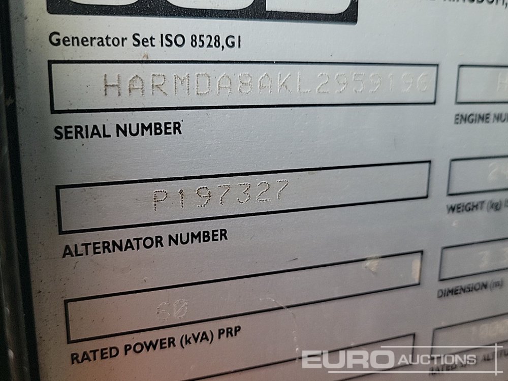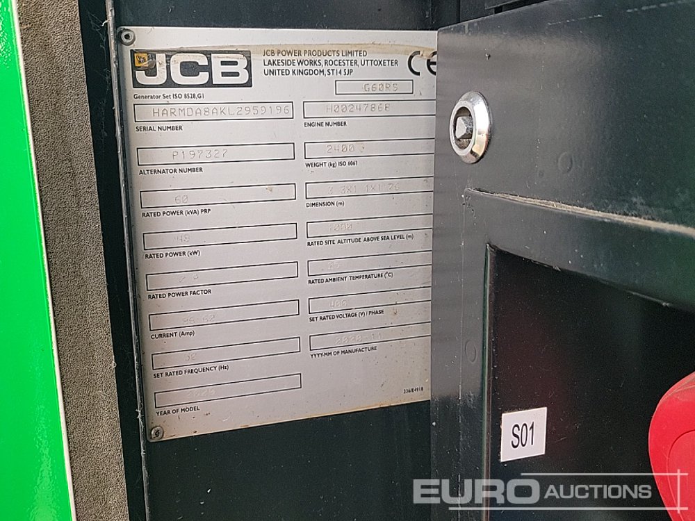 2022 JCB G60RS 60kVA Generator, 4 Cylinder Engine (Parts Missing) - P197327