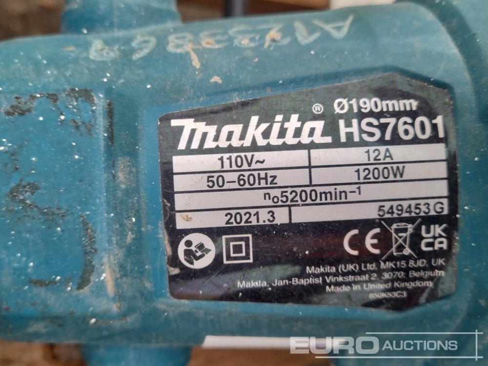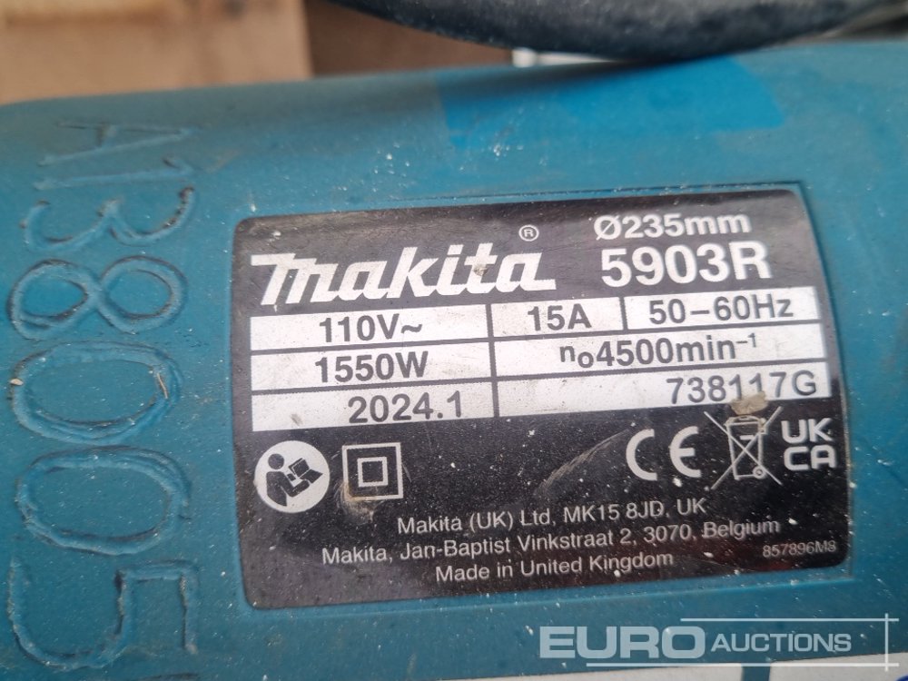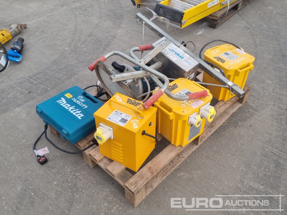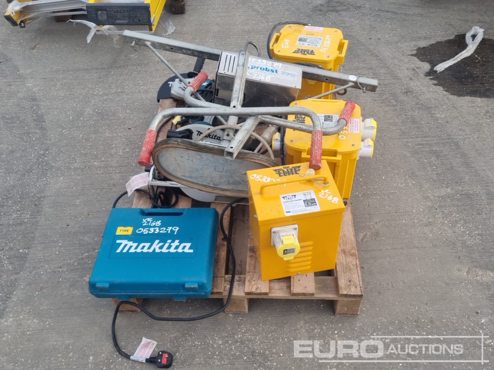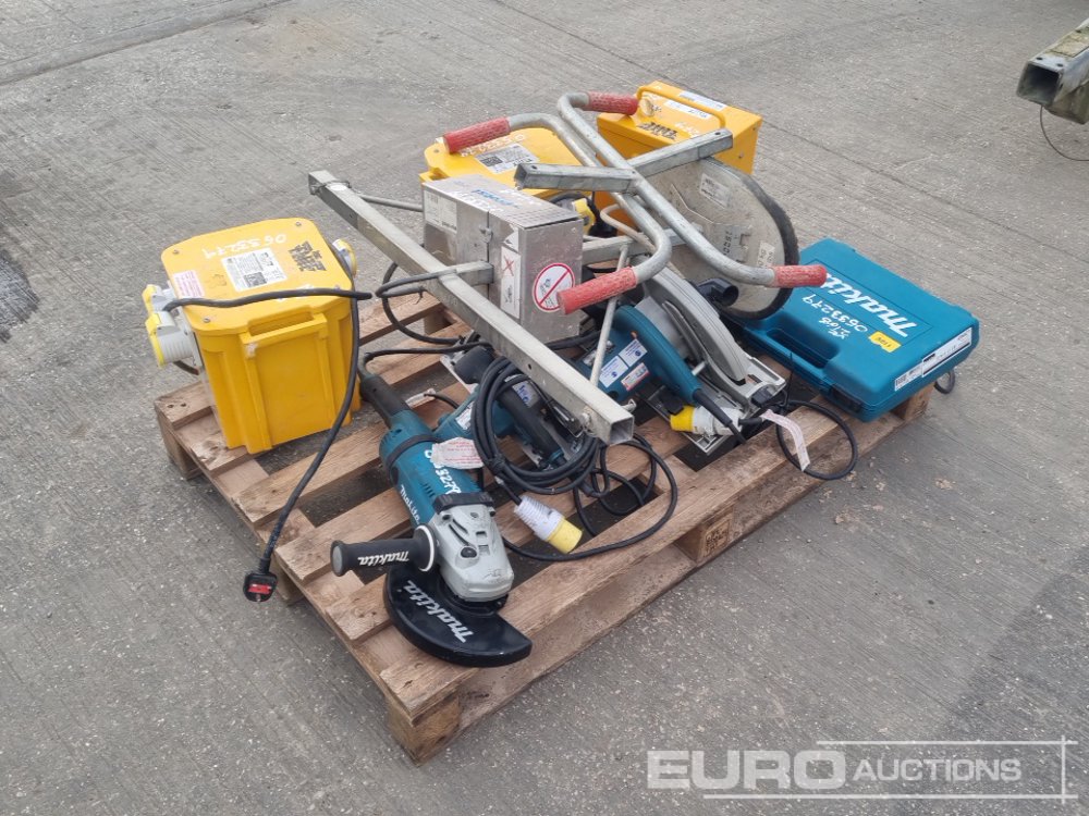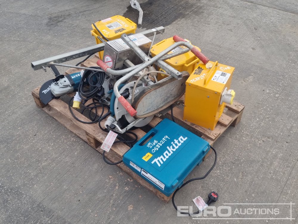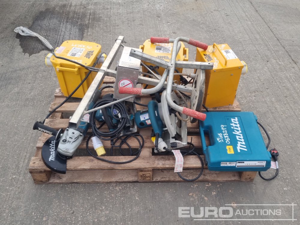 110Volt Transformer (3 of), 110Volt Makita Grinder, 110Volt Makita Circular Saw (2 of), 110Volt Makita Jig Saw, Vacuum Slab Lifter