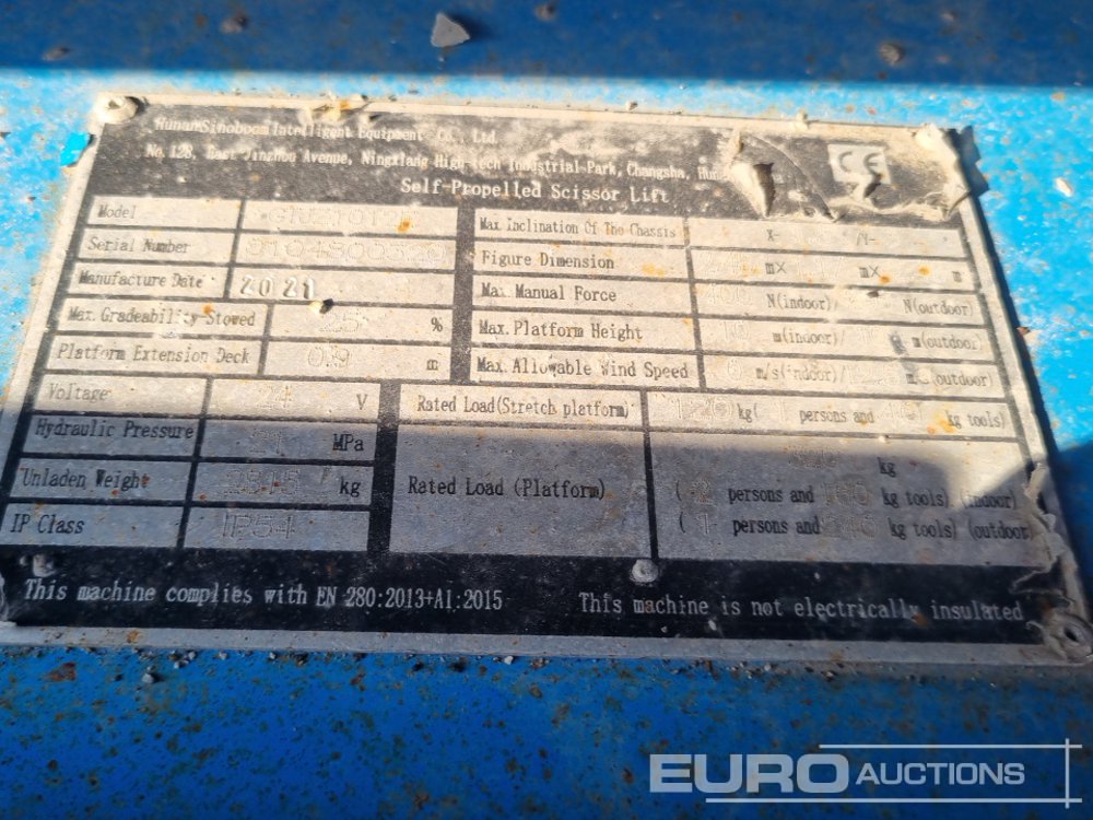 2021 Sinoboom GTJZ1012 Electric Scissor Lift, 12m Working Height, 320kg Platform Capacity, Extending Deck, Non Marking Tyres (Flat Battery) - 0104800320
