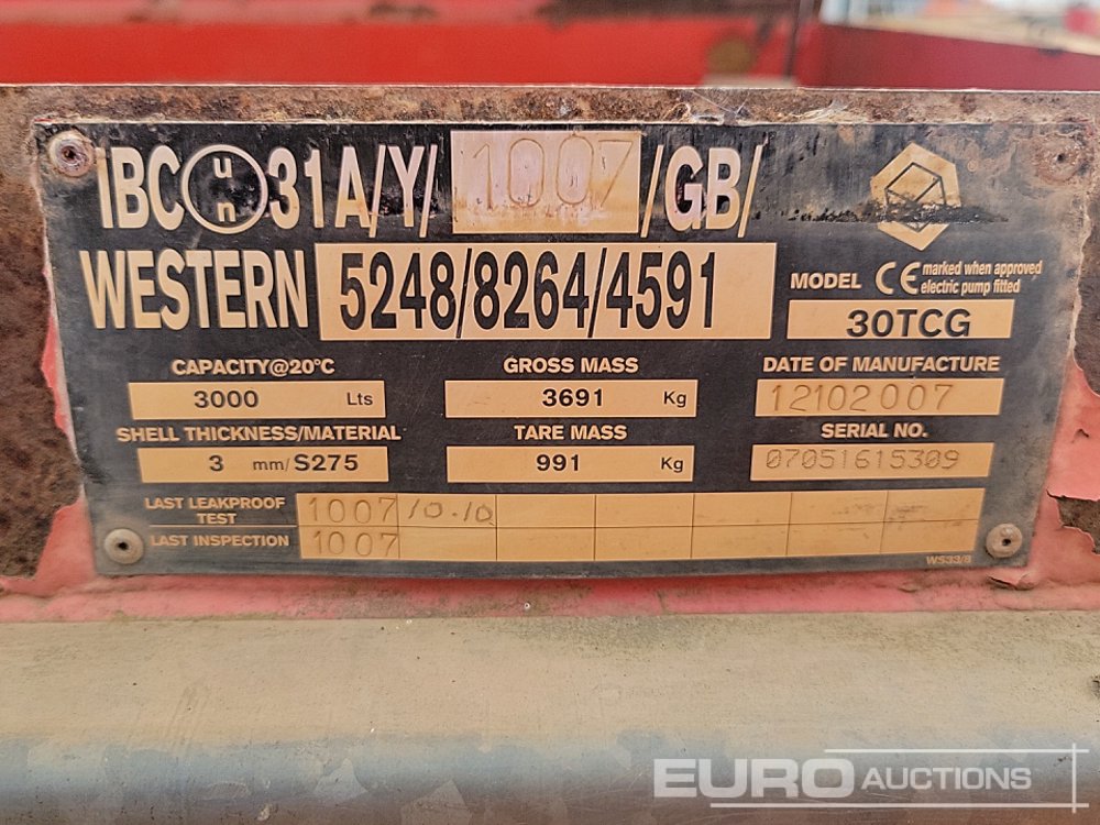 Western 30TCG 3000 Litre Static Bunded Fuel Bowser - 07051615309