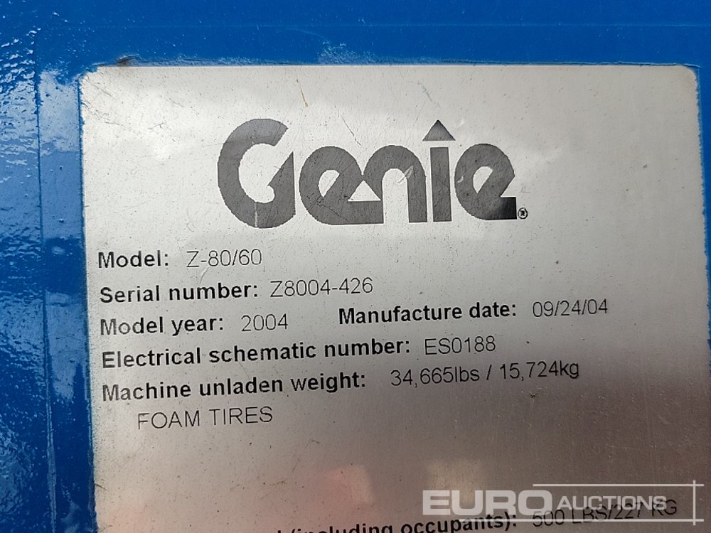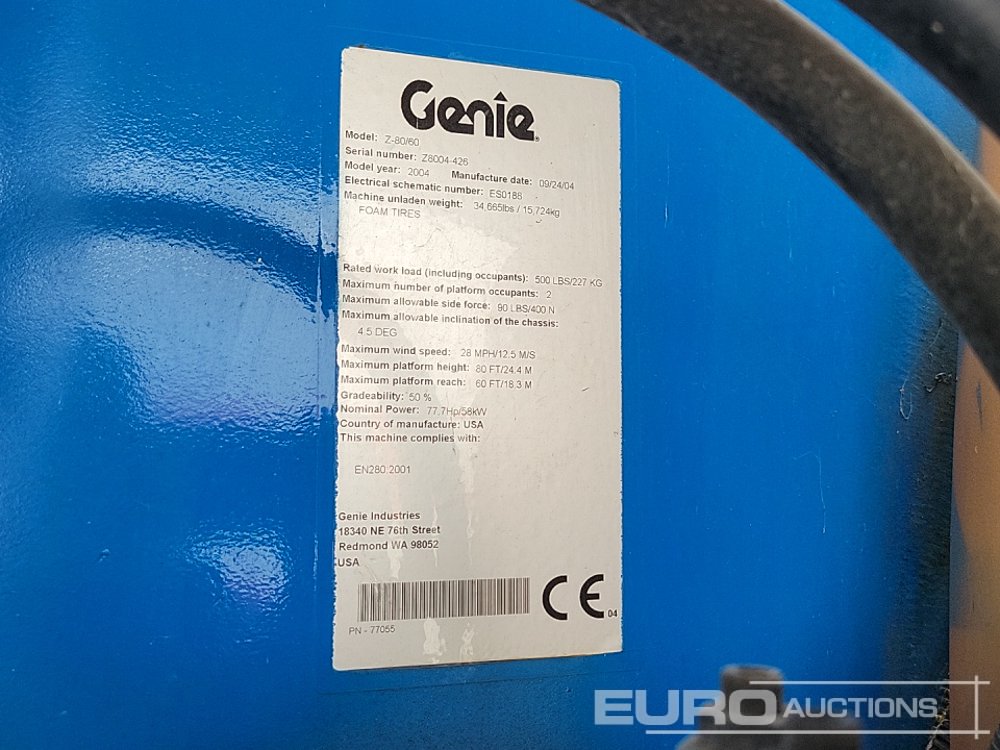 Genie Z80/60 4x4 Diesel Articulated Boom Lift, 25.7m Working Height, 227kg Platform Capacity - Z8004426