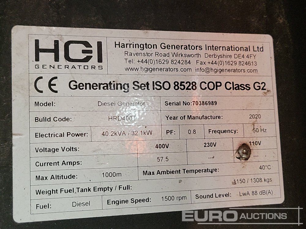 HGI Generators HRD40K 40kVA Generator, 4 Cylinder Engine (Parts Missing) - 140533556