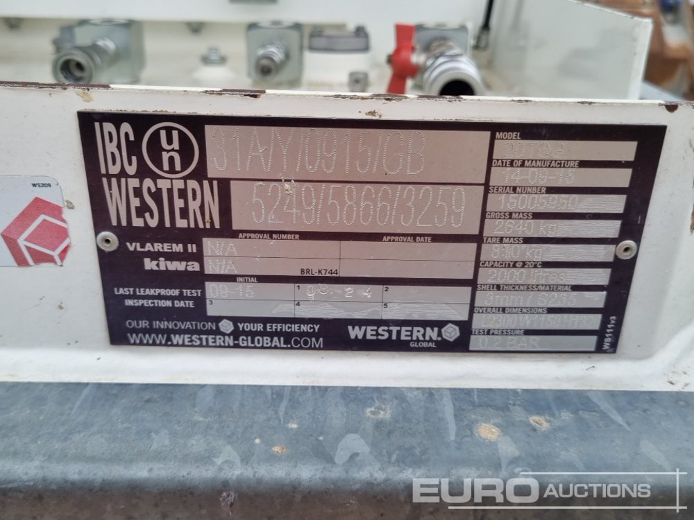 2015 Western 20TCG 2000 Litre Static Bunded Fuel Bowser - 15005950