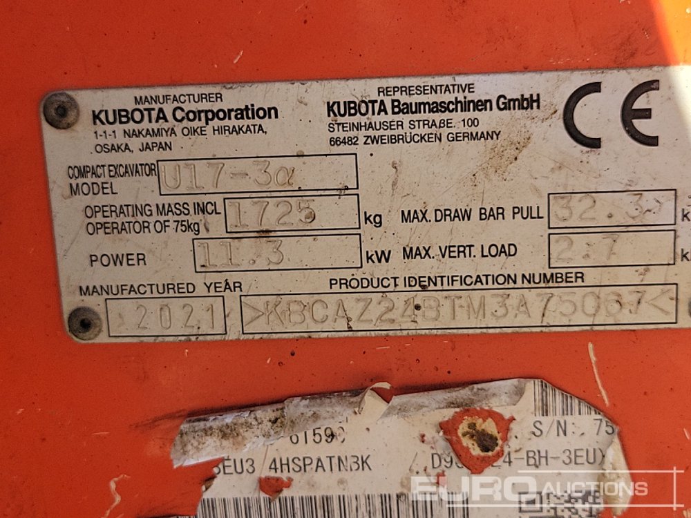 2021 Kubota U17-3A