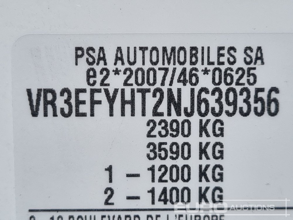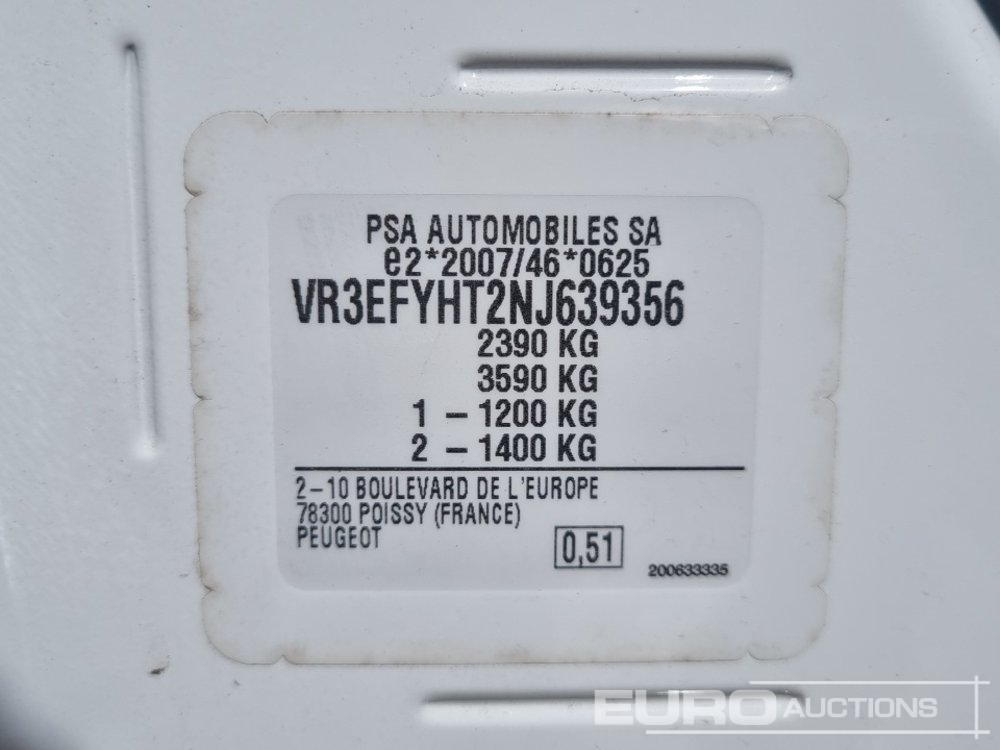 2022 Peugeot Partner Professional 6 Speed Van, Side Door, Cruise Control, Bluetooth, A/C, Parking Sensors (Tested 06/26) - NV22 LSO - VR3EFYHT2NJ639356