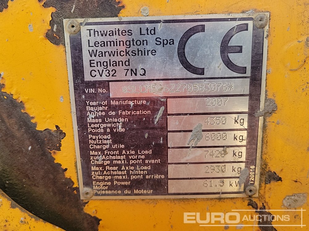 Thwaites 6 Ton Swivel Skip Dumper, Roll Bar (Non Runner) - CN07 HDC - SLCM506ZZ705B3076