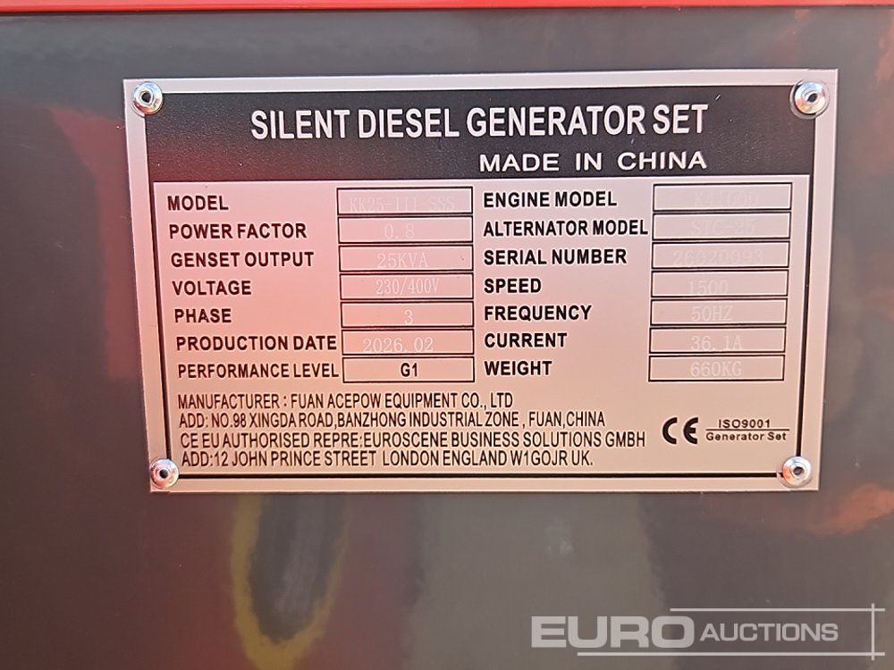 Unused 2026 Kawakenki KK-25-III-SSS 25kVA Generator, 4 Cylinder Engine - 140534494