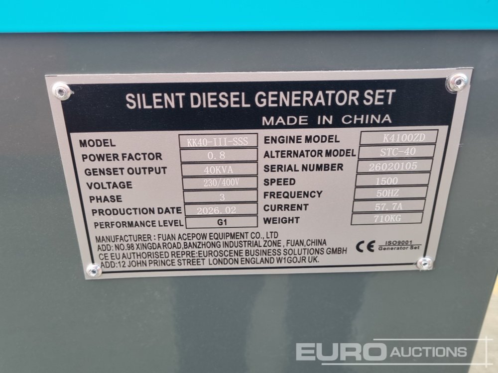 Unused 2026 Kawakenki KK-40-III-SSS 40kVA Generator, 4 Cylinder Engine - 14535506