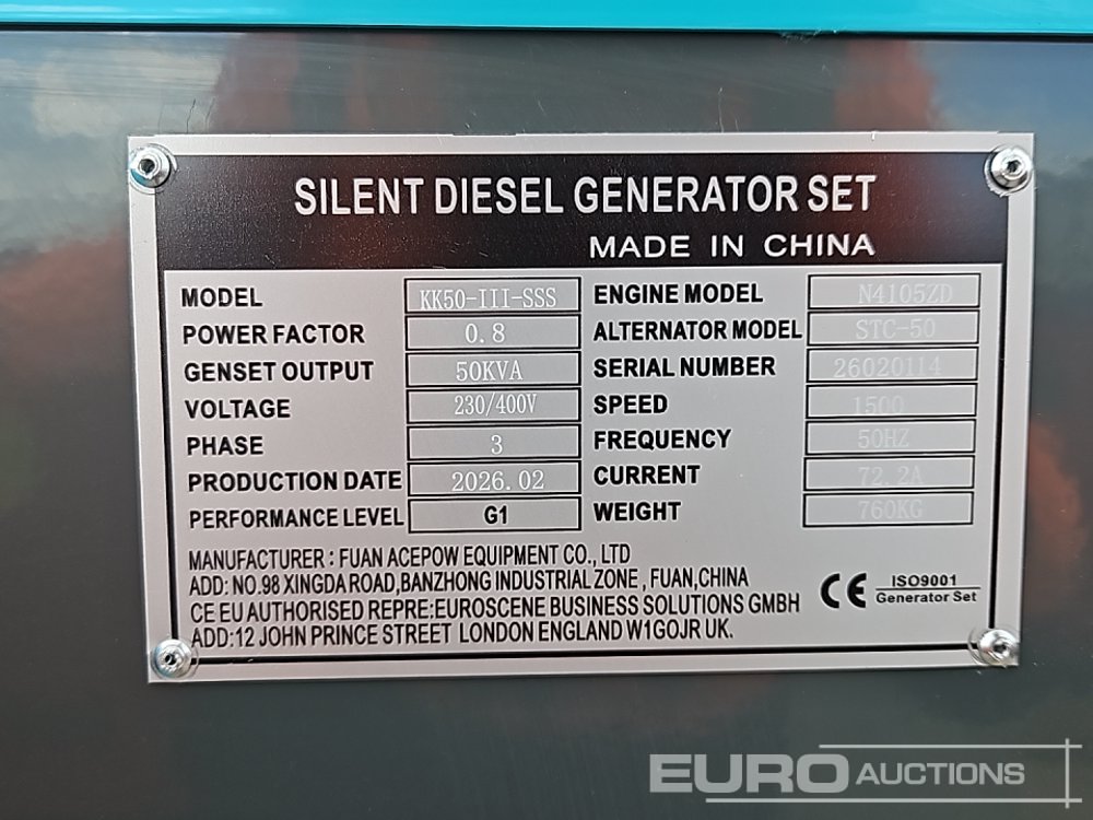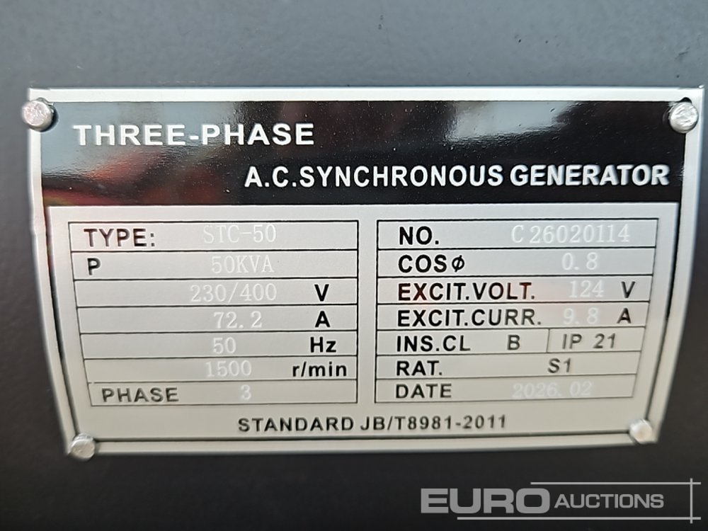 Unused 2026 Kawakenki KK-50-III-SSS 50kVA Generator, 4 Cylinder Engine - 140534516