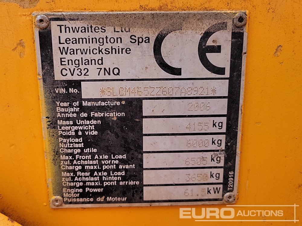 Thwaites 6 Ton Dumper, Roll Bar - SLCM465ZZ607A8921