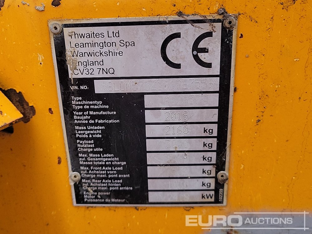 2019 Thwaites 3 Ton Swivel Skip Dumper, Roll Bar (Meter Reading: 335 Hours) - KX19 BSZ - SLCM573Z1917E7559