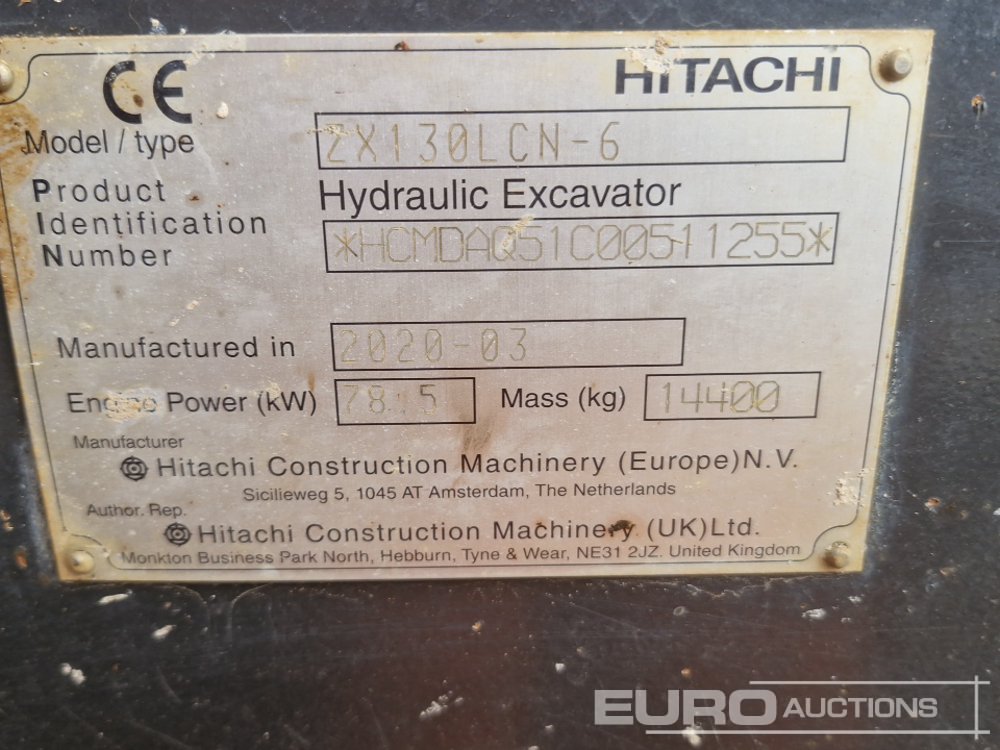 2020 Hitachi ZX130LCN-6