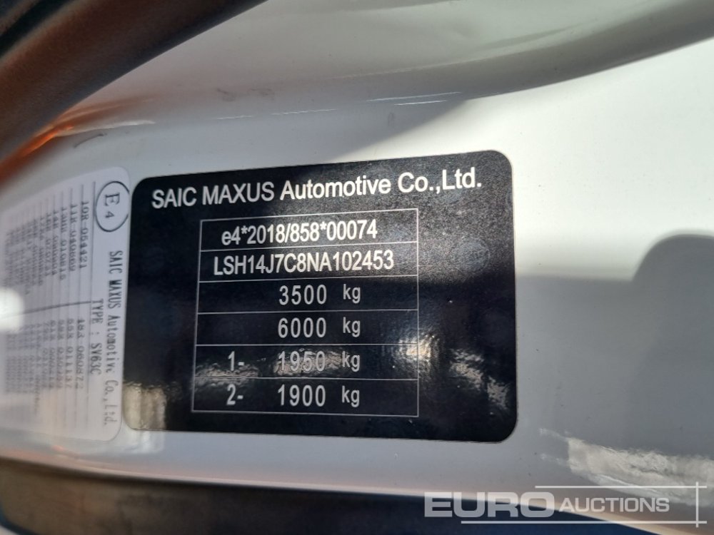 2023 Maxus Deliver 9 6 Speed Camper Van, Side Door, Cruise Control, Bluetooth, Lane Assist, A/C (Tested 03/27) (Category S Insurance Loss) (Meter Reading: 38284 Miles) - YC72 PMV - LSH14J7C8NA102453