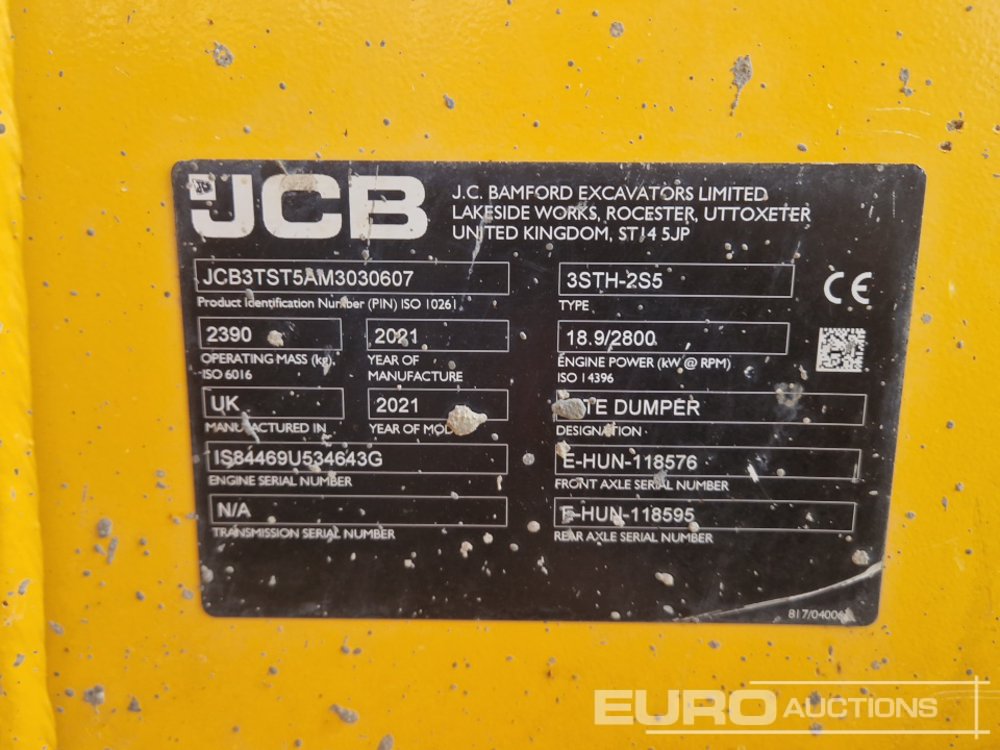 2021 JCB 3T-2 3 Ton Swivel Skip Dumper, Roll Bar - YT21 SXH - JCB3TST5AM3030607