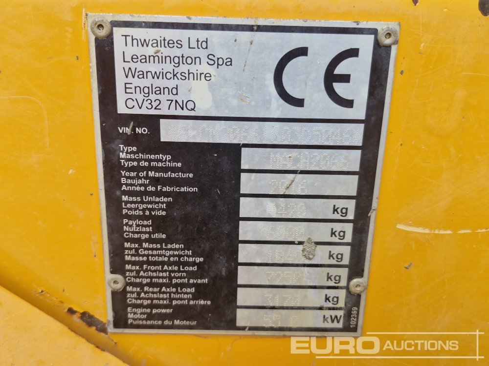 2016 Thwaites 6 Ton Swivel Skip Dumper, Roll Bar (Reg. Docs. & Declaration of Conformity Available) - YJ16 KZT - SLCM20661603D5046
