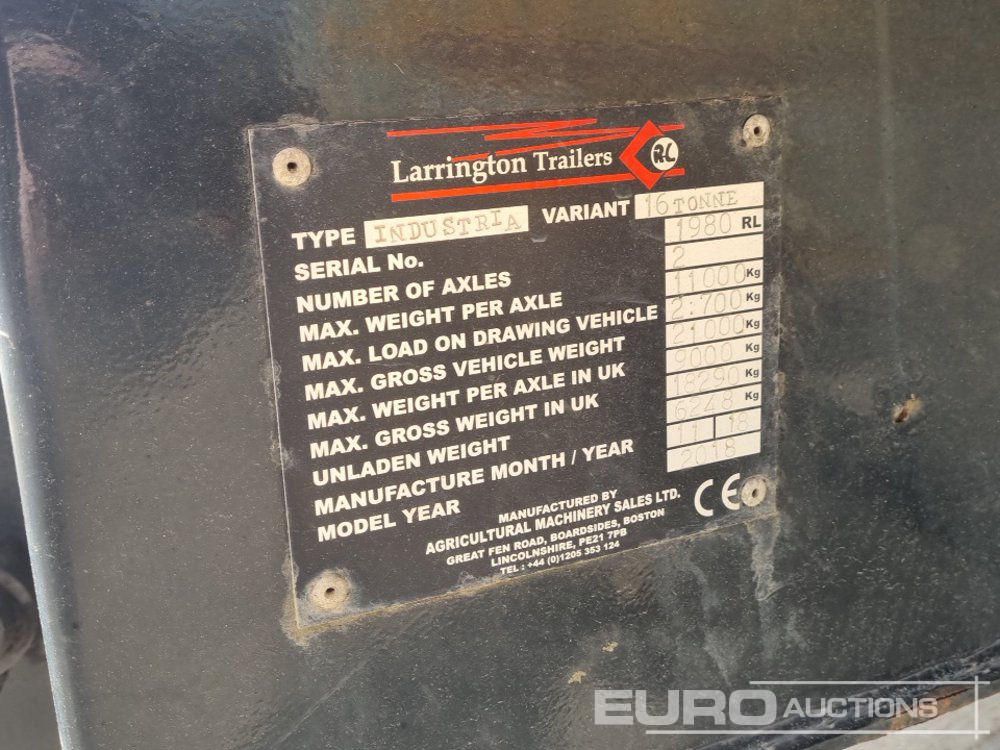 2018 Larrington Twin Axle Sprung Drawbar Tipping Trailer, Hydraulic Tailgate, 10 Stud Axle