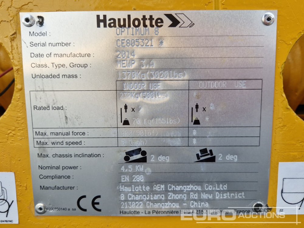 2014 Haulotte Optimum 8