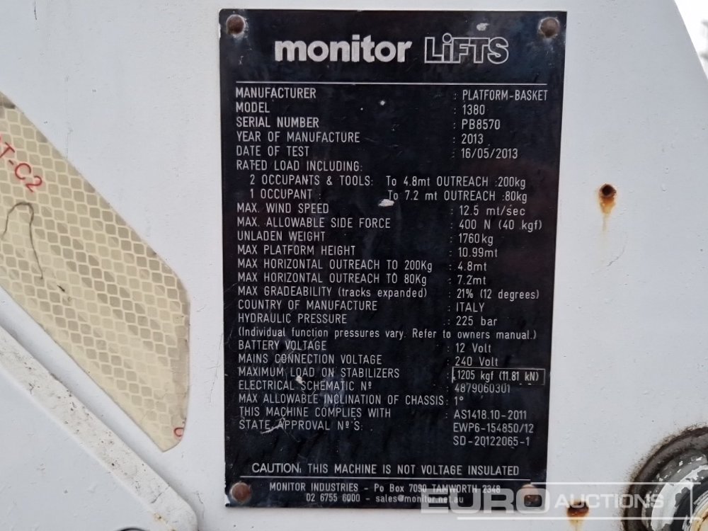 2013 PB 1380 Tracked Articulated Spider Boom Lift, 13m Working Height, 200kg Platform Capacity - PB8570