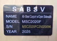 Unused 2024 SABSV MSC2020F All Steel Car Port Used For Storing Vehicles - MSC2020FC25020096