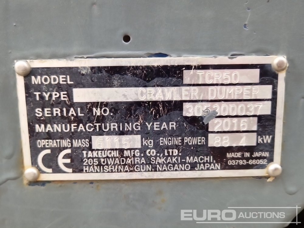 2016 Takeuchi TCR50 Tracked Swivel Skip Dumper - 305300037