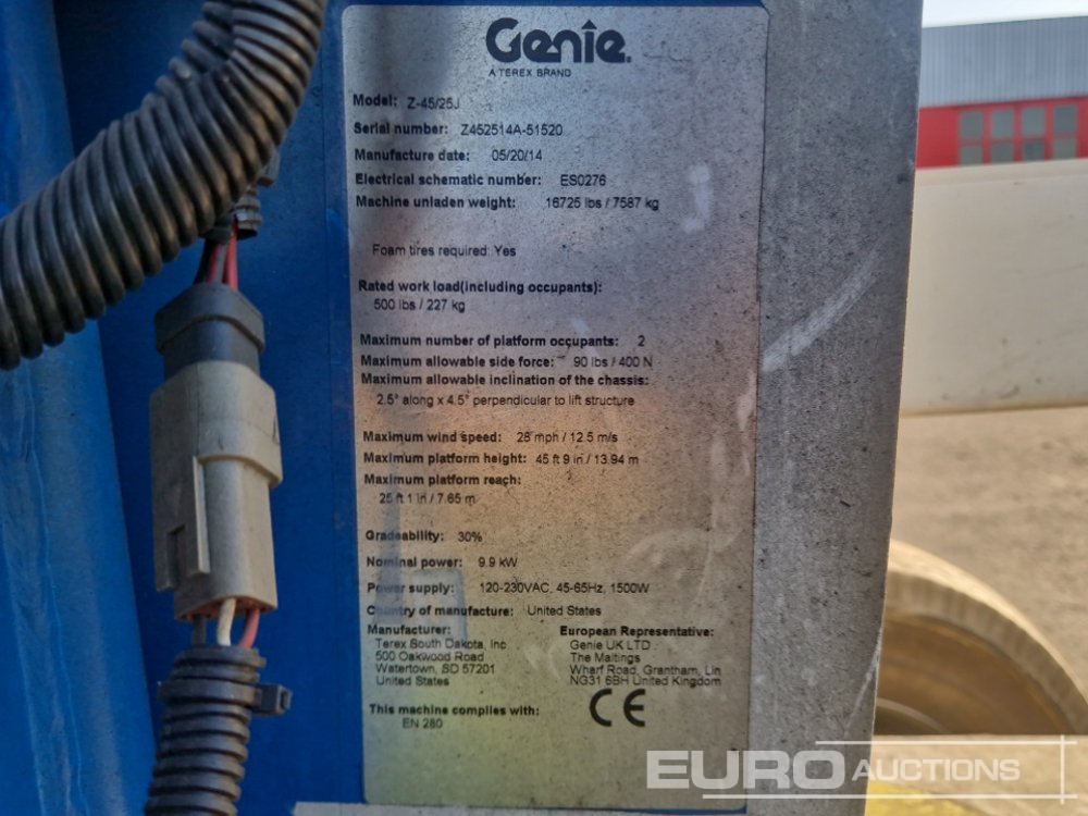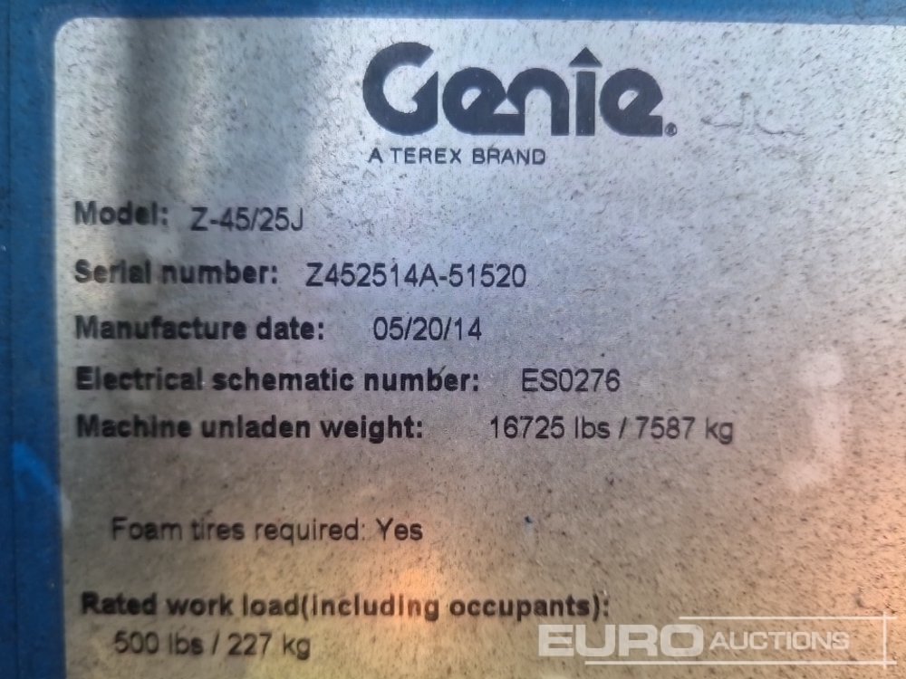 2014 Genie Z-45/25J Diesel Articulated Boom Lift, 15.94m Working Height, 227kg Platform Capacity - Z452514A-51520