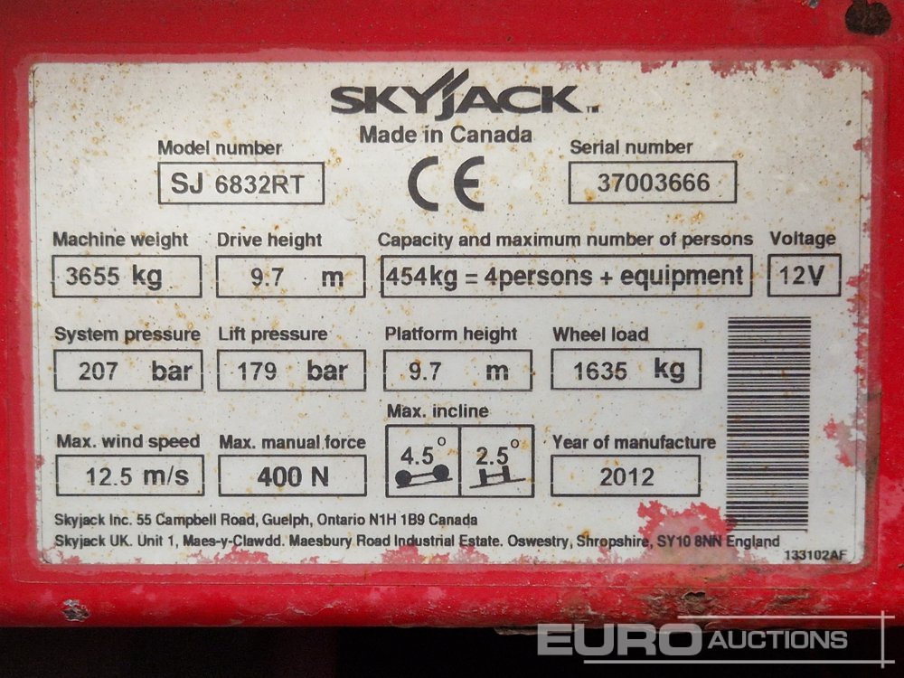 2012 SkyJack SJ6832RT