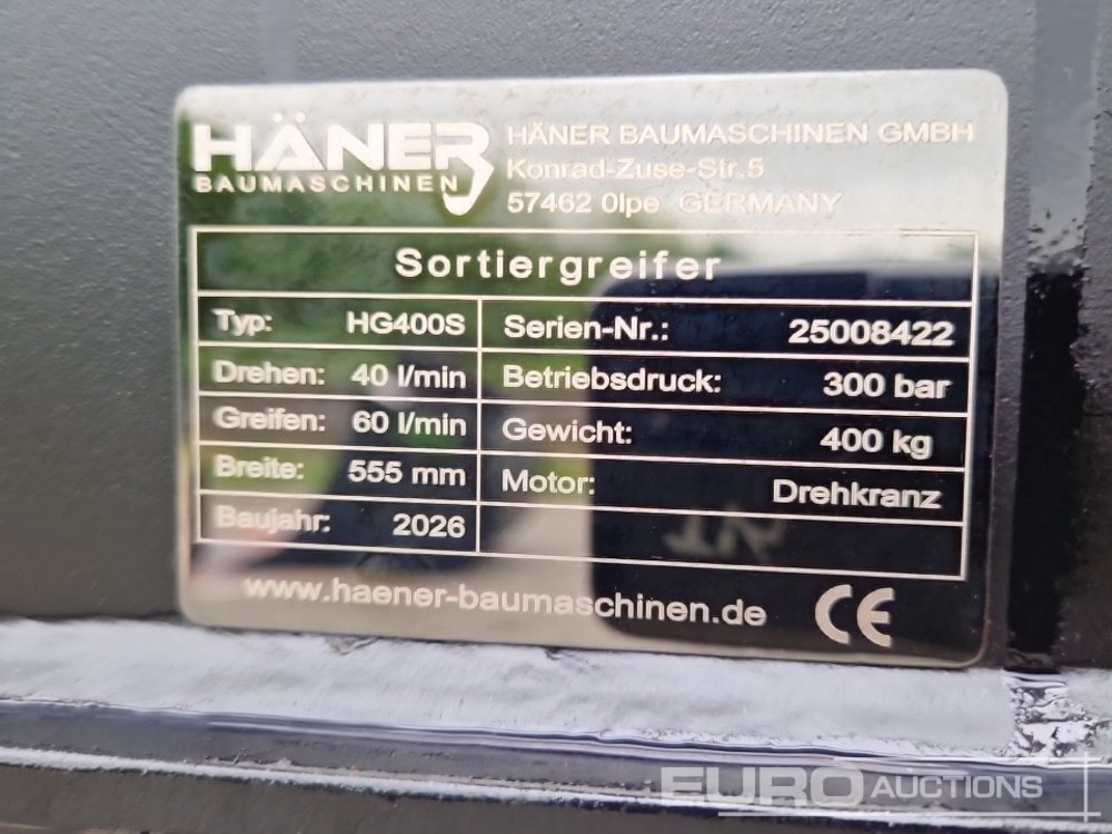 Unused 2026 Häner HG400S 21" Hydraulic Rotating Sorting Grapple - 25008422