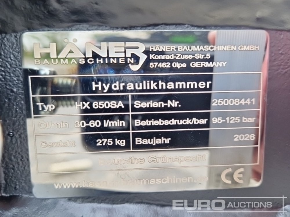 Unused 2026 Häner HX650SA Hydraulic Breaker to suit 4-5 ton Excavator - 25008441