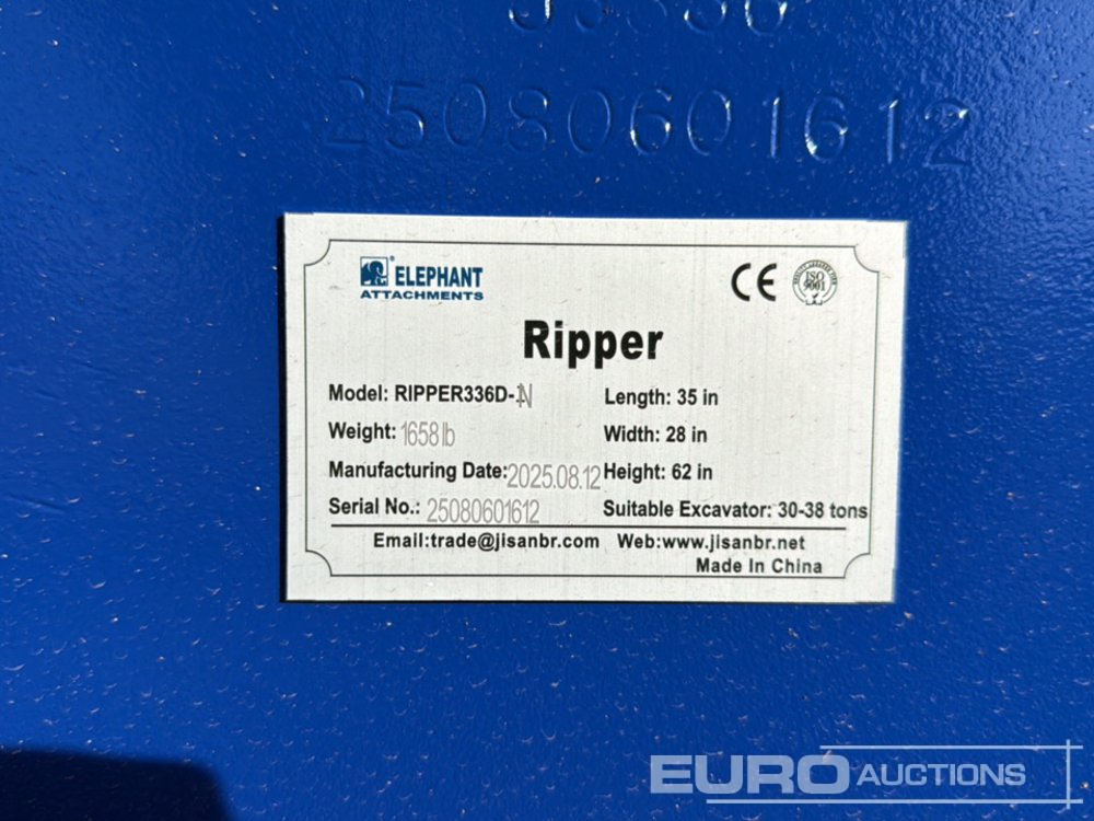 Unused 2025 Elephant RIPPER336D-N Ripper to Suit 30-38 Ton Excavator - 25080601612