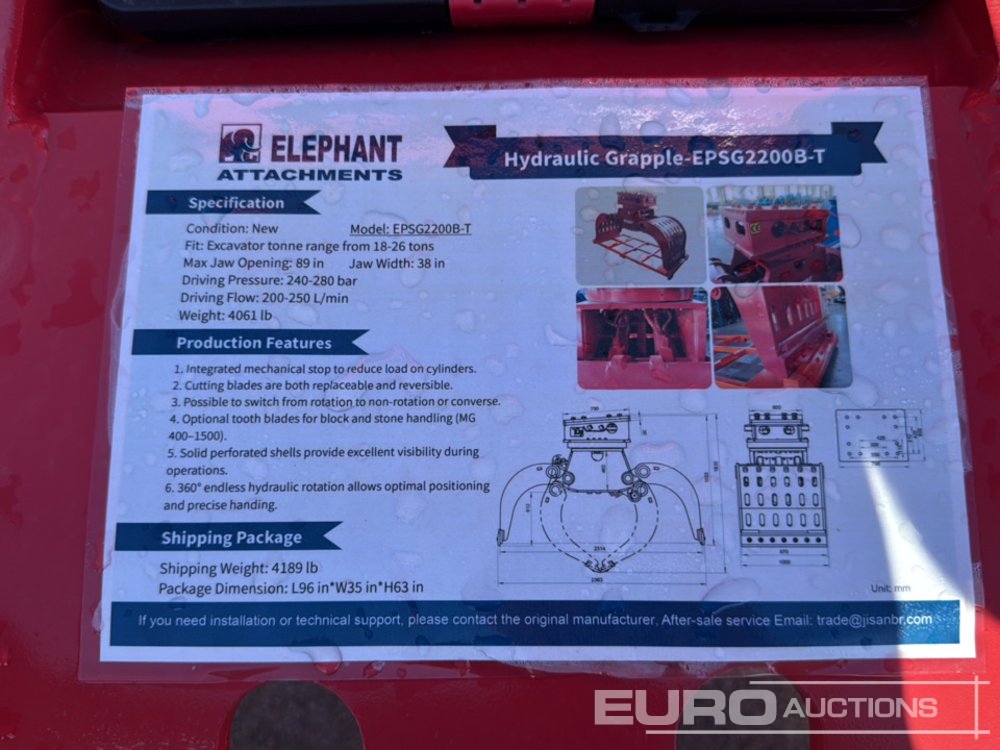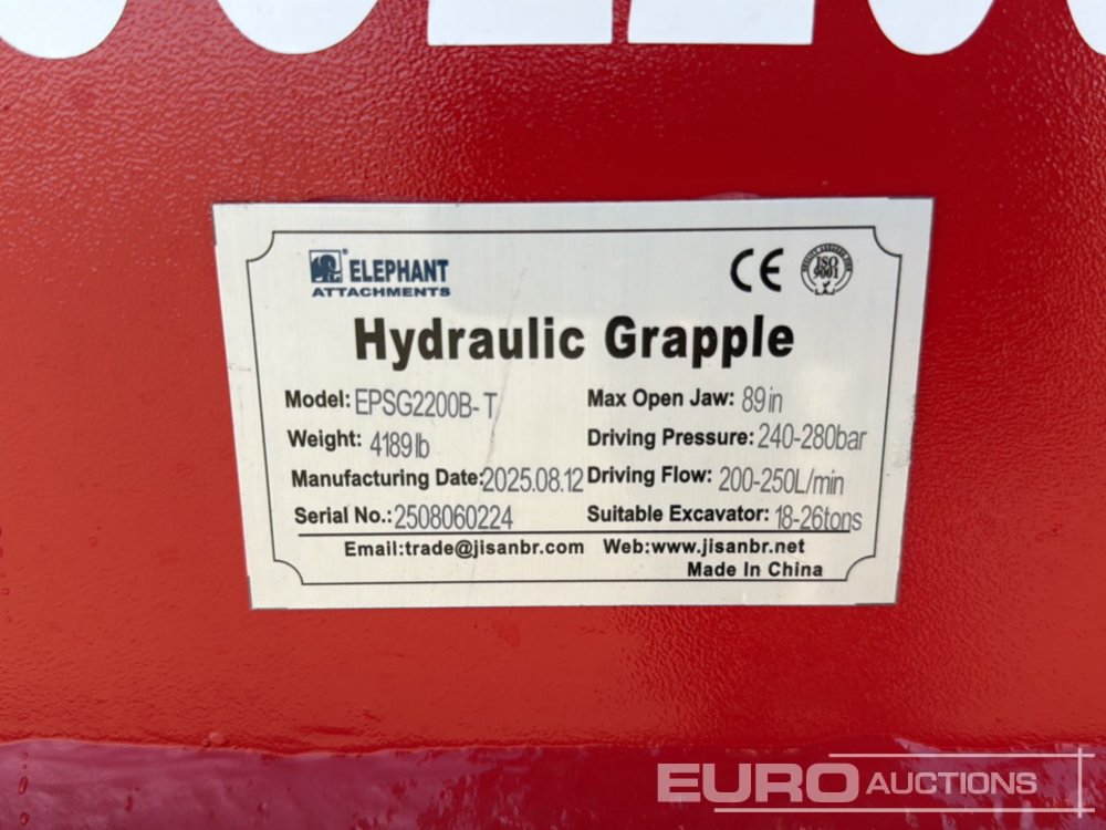 Unused 2025 Elephant EPSG2200B-T Grapple to Suit 18-26 Ton Excavator - 2508060224