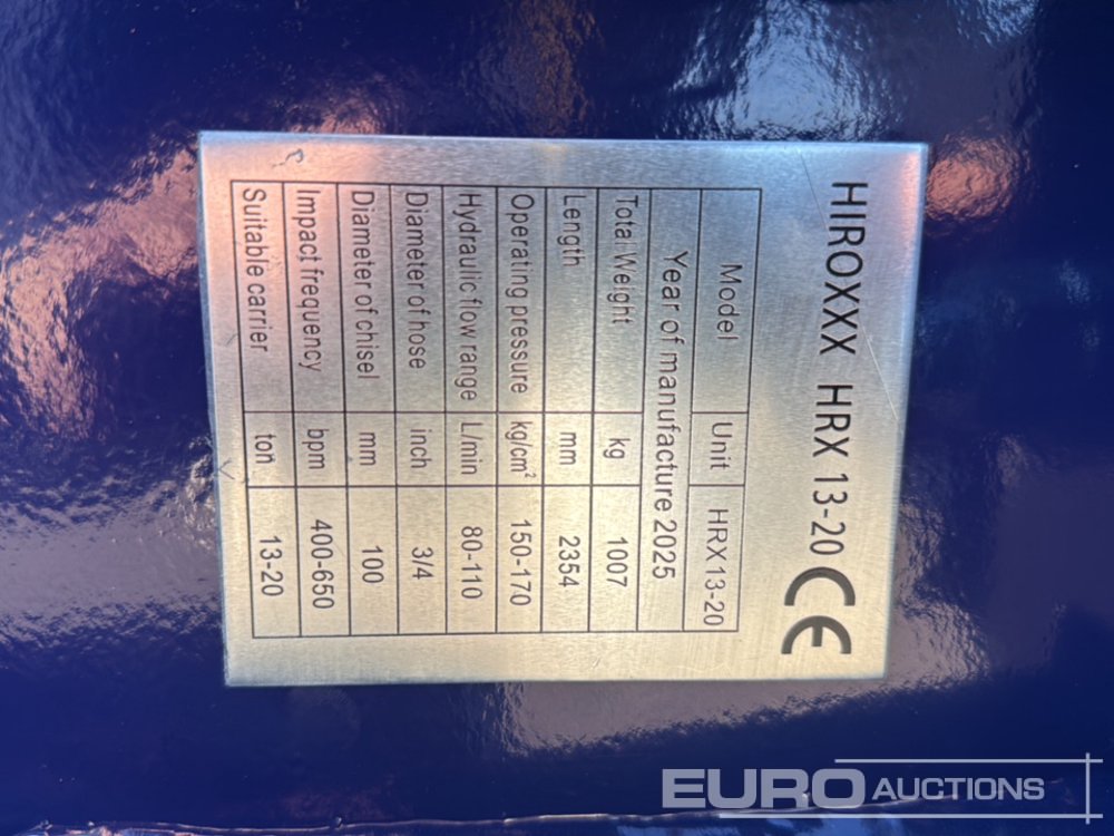 Unused 2025 Hirox HRX13-20 Hydraulic Breaker 65mm Pin to suit 13 Ton Excavator - 240075366