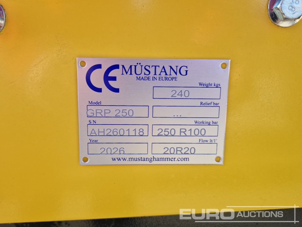 Unused 2026 Mustang GRP250 Rotating Grapple to suit 4-8 Ton Excavator (Declaration of Conformity Available / CE Disponible) - AH260118