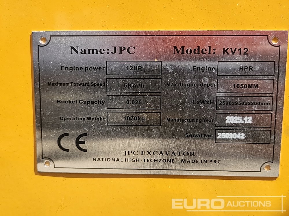 Unused 2025 JPC KV12 Rubber Tracks, Blade, Piped, Bucket (Third Party Certificate of Conformity Available) - 2509042