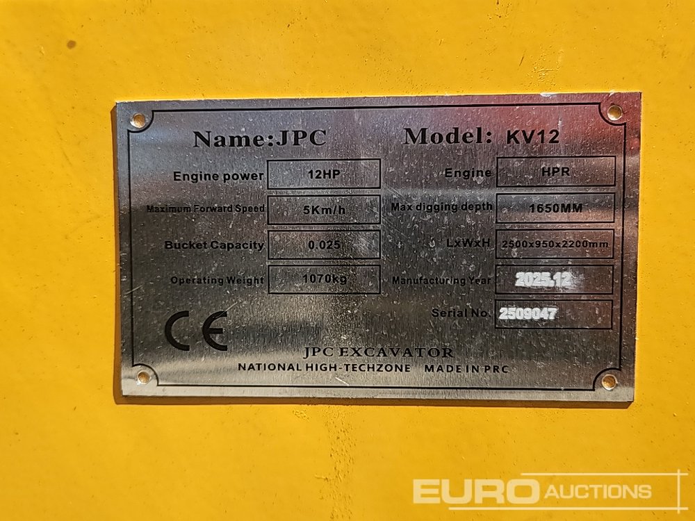 Unused 2025 JPC KV12 Rubber Tracks, Blade, Piped, Bucket (Third Party Certificate of Conformity Available) - 2509047