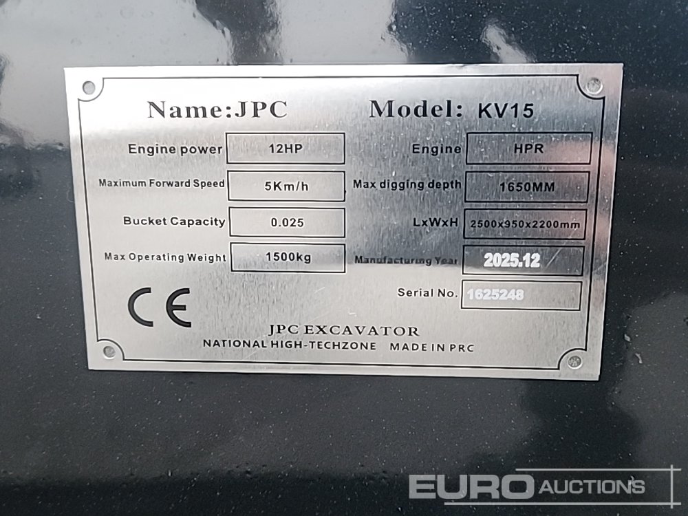 Unused 2025 JPC KV15 Rubber Tracks, Blade, Piped, Bucket (Third Party Certificate of Conformity Available) - 1625248