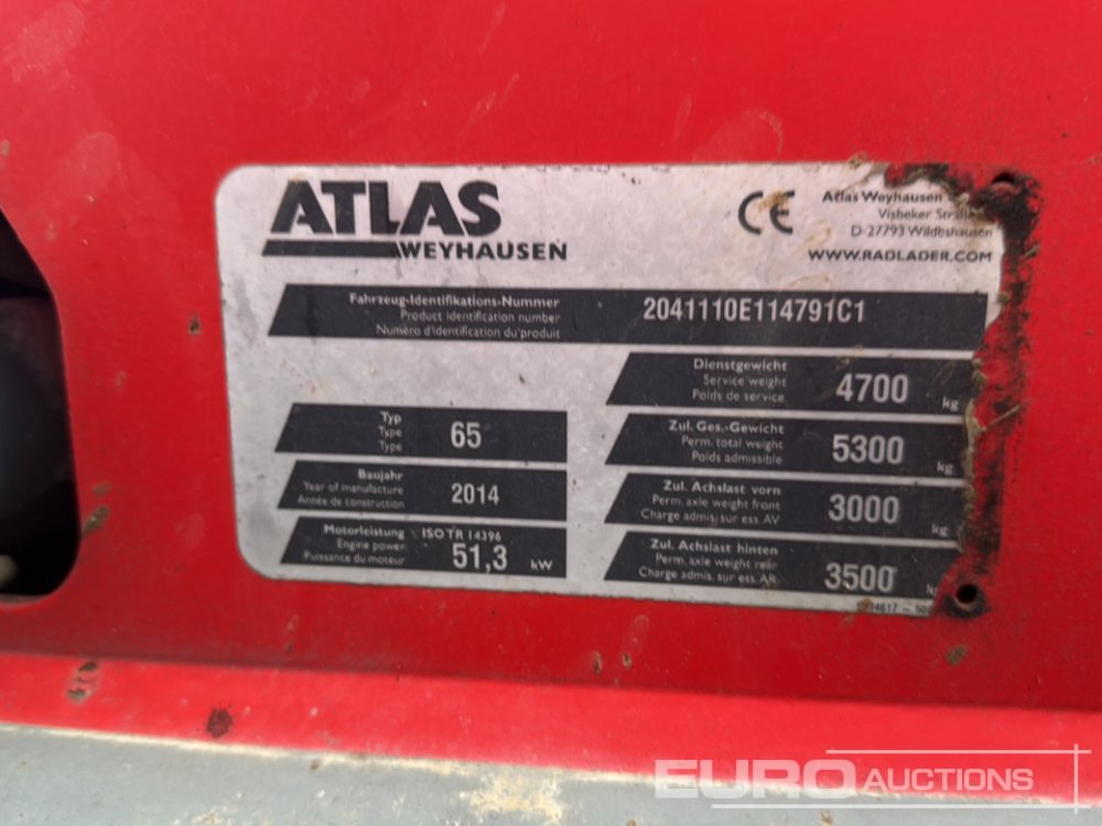 2014 Atlas AR65S Wheeled Loader, 4in1 Bucket, Forks (Manual in Office) - 2041110E114791C1