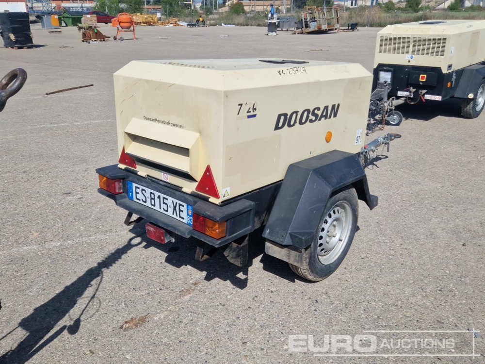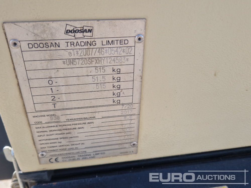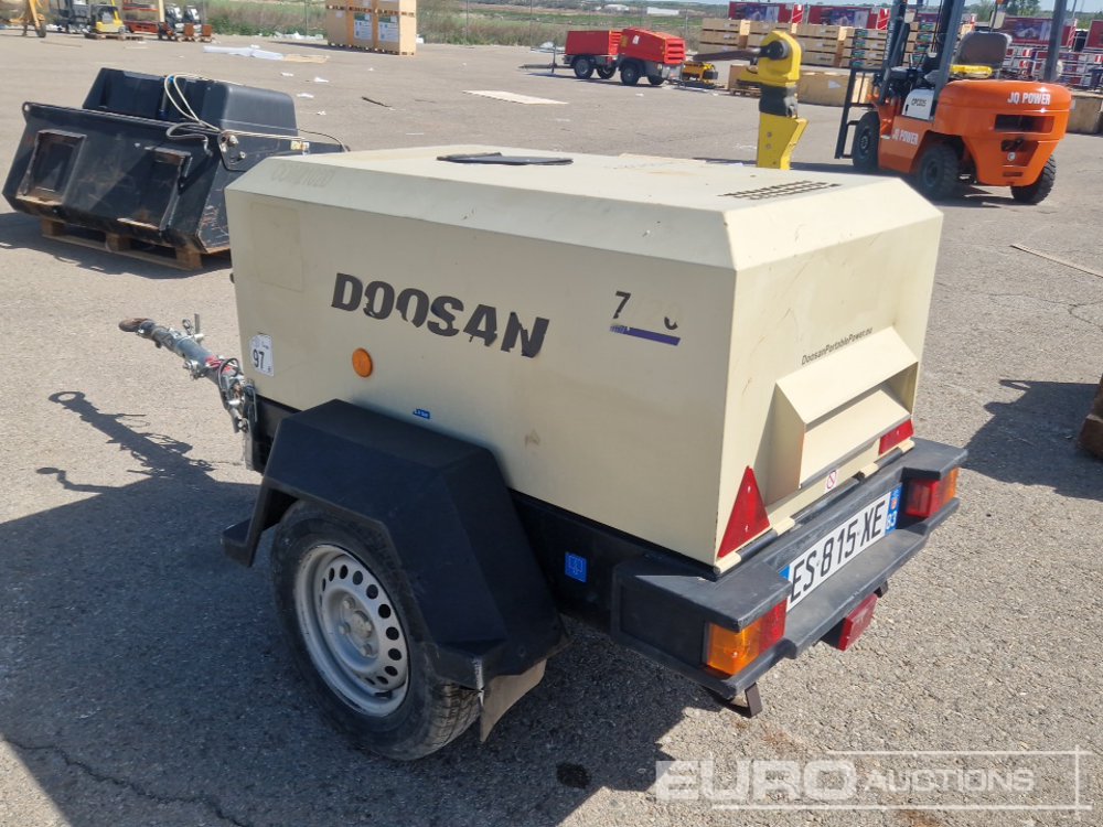 2017 Doosan 7/20E Single Axle 17.5 kW Air Compressor (French Reg Docs Available / Documentación Francesa Disponible) - ES815XE - UN5720SFXHY124583