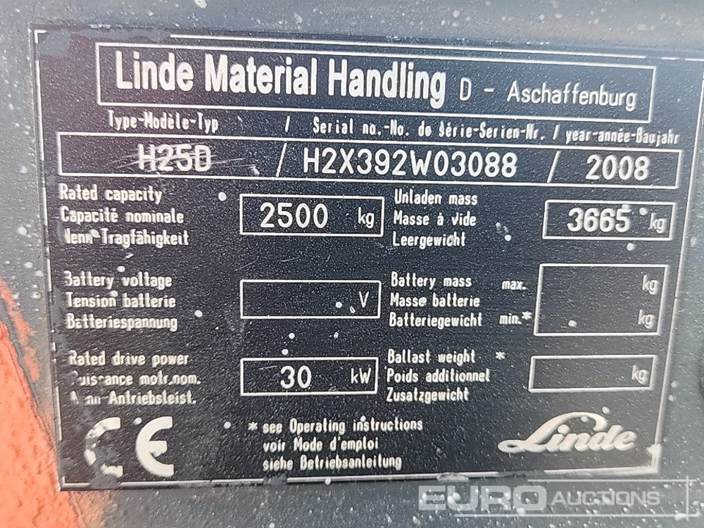 Linde H25D 2.5 Ton Forklift, 2 Stage Mast, Side Shift, Forks / Carretilla Elevadora - H2X392W03088