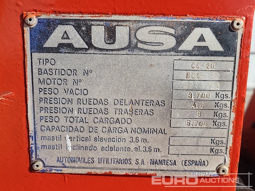 Ausa CS20 4X2 Diesel Forklift, 2 Stage Mast, Sideshift, Forks - BCS-175