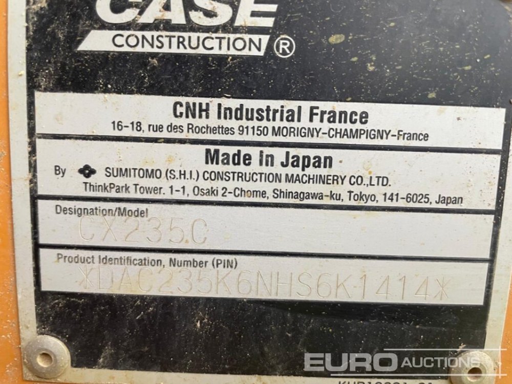 2017 Case CX235C 700mm Pads, Blade, Piped, Hyd. QH, Reverse Camera, Emergency Stops, Fire Extinguisher, UHF Radio, Safety Rails, Roof Guard, Bucket, A/C (Hour meter Shows 9,580hrs) - NHS6K1414