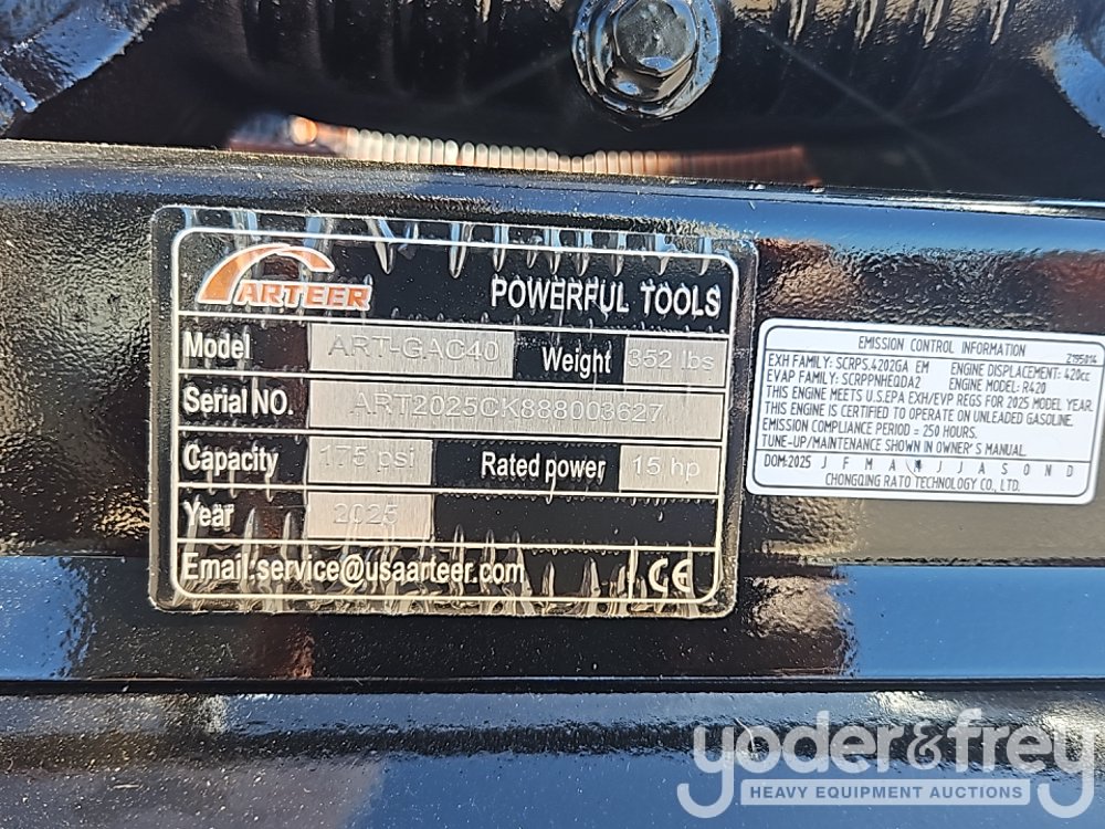 Unused Arteer ART-GAC40 Air Compressor, 15 Hp,175 Psi Working Pressure , 1 Cylinder420cc, Gasoline Engine - ART2025CK88803627