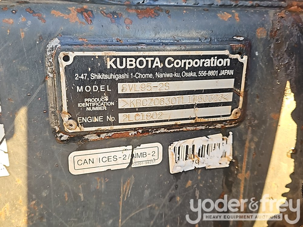 2020 Kubota SVL95-2S Tracked Skidsteer Loader, Cab, A/C, Joystick Controls, Aux Hydraulics, Bucket - KBCZ0630TL1850326