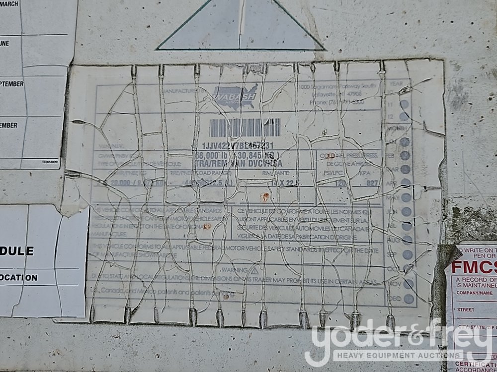 2011 Wabash 42' Tandem Axle Dry Van Trailer, 68,000lb GVWR - 1JJV422V7BL467231
