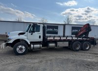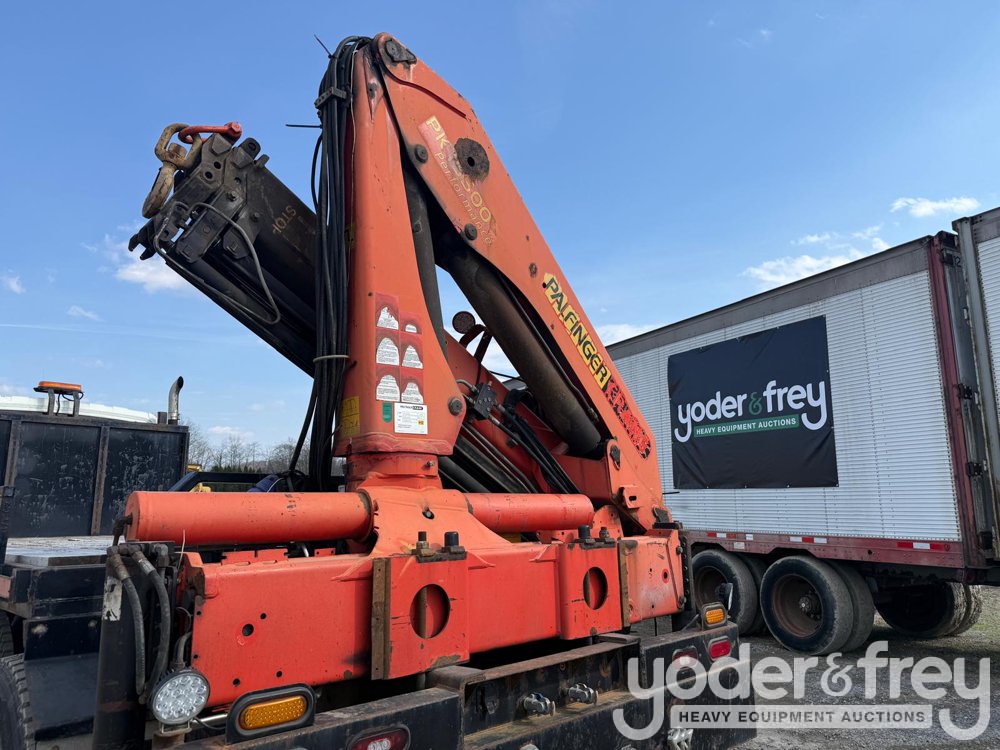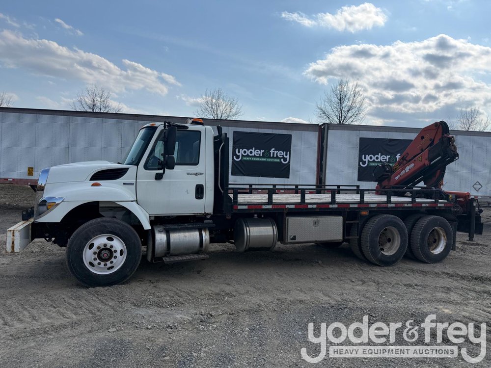 2008 International 7400 SBA 6x4 Tandem Axle Flatbed Truck w/ Palfinger PK15500 Crane, 7.6L L6 Diesel Engine - 1HTWGAAR08J690284