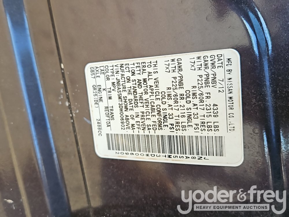 2013 Nissan Rogue SUV, A/C, V6 Gas Engine (Meter Reading: 136943 Miles) - JN8AS5MT3DW006902