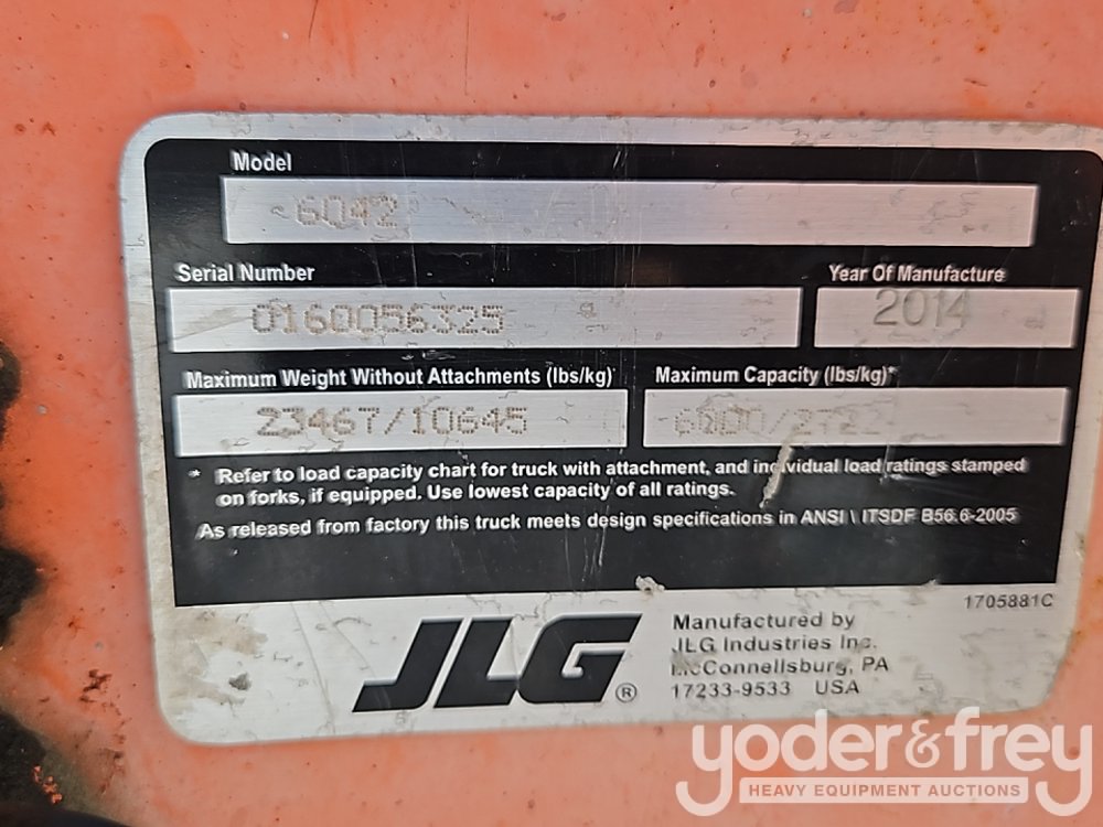 2014 Skytrak 6042 Telehandler, OROPS, 6,000lb Max Lift Capacity, 42' Max Lift Height, Forks (Meter Reading: 3176 Hours) - 0160056325