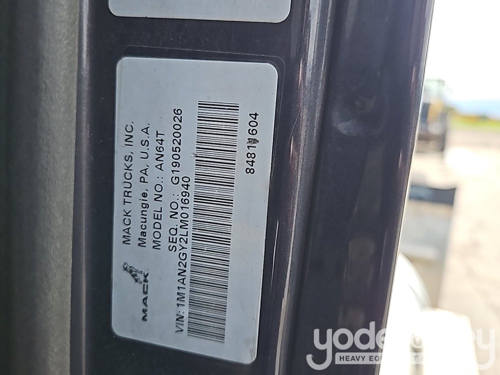 2020 Mack Anthem T64 6x4 Tandem Axle Truck Tractor, Day Cab, MP-7 425HP Diesel Engine, Automatic M-Drive Transmission (Meter Reading: 587000 Miles) - 1M1AN2GY2LM016940