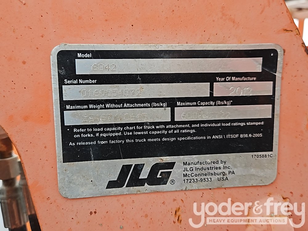 2014 JLG 6042 Telehandler, OROPS, 6000lbs Max Lift Capacity, 42’ Max Lift Height, Frame Levelling, Forks (Meter Reading: 3723 Hours) - 0160054072