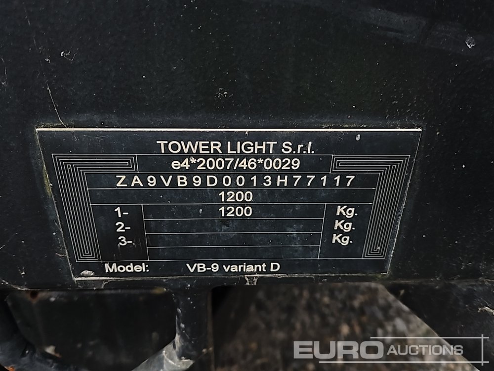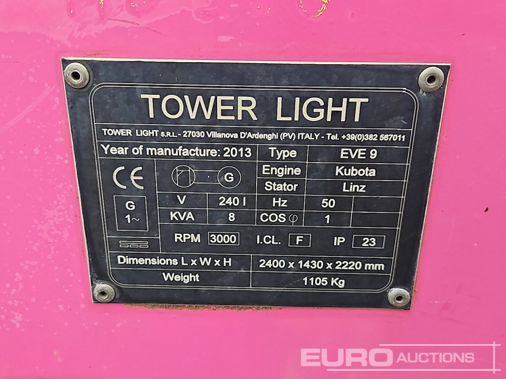 2013 Towerlight EVE9 Single Axle Diesel LED Lighting Tower, Kubota Engine - H77117